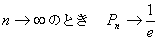 よってn→∞のとき,Pnの極限値は(1/e)。