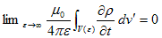 となります。電荷密度ρは速度vで動くし、時間的にも変化するとみなすにも関わらず、ここでも静電荷の保存則が有効だとすれば、(2)は、