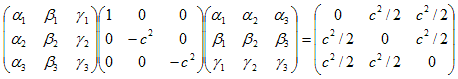 が得られます。αi,βi,γi,i=1〜3 は9個ありますが、条件(21),(22)は6個です。