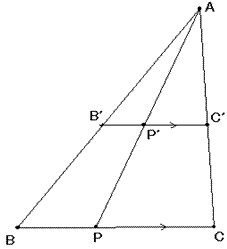 表現を変えると、B’P’:P’C’=BP:PCとなります。