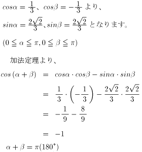 cos(α+γ)の値とcosγの値が異符号であることから、