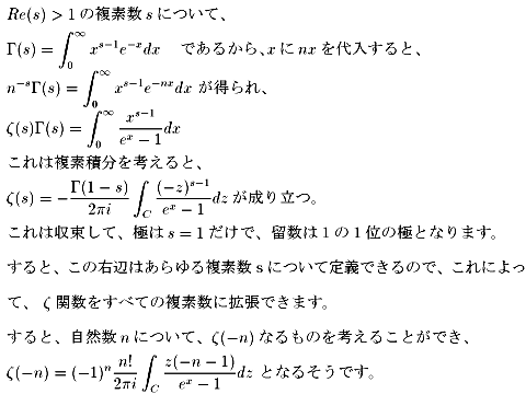 しかし、ζ(−1)というのはすべての自然数の和とは違うわけです。