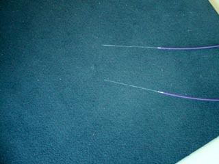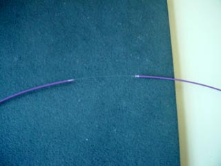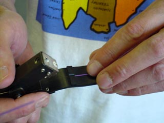カッターでファイバーに傷を付け、ガラスの芯を折ります。