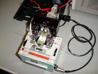 光ファイバーの被覆を剥き、シンナーでゴミを取り除きます。