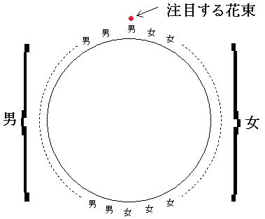 円の左半分が男子だけ、右半分が女子だけという風に並ぶと、