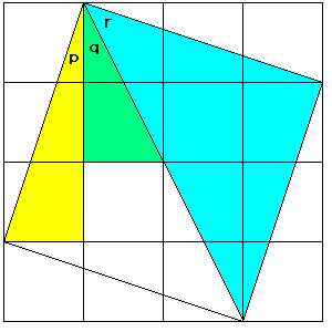 よって∠p+∠q=45度、また∠r=45度であるから、