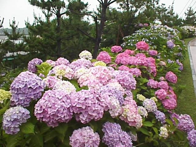 八景島のあじさいは、県内最大級の株数の約20,000株植えられ、紫・青・ピンク・白などの「ヨウアジサイ」や「ガクアジサイ」が、